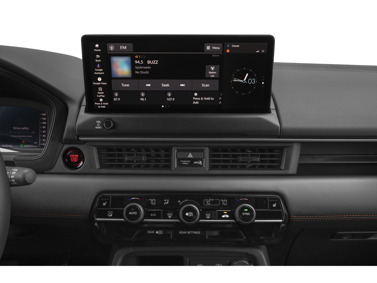 - Radio: 245-Watt Audio System -inc: 9 speakers w/subwoofer, 12.3" color touchscreen, Google built-in (includes 3 years unlimited data plan for in-vehicle apps), Radio Data System (RDS), Speed-Sensitive Volume Compensation (SVC), wireless Apple CarPlay and Android Auto compatibilities, Wi-Fi hotspot capability, HD Radio, 3.0-amp USB type-C smartphone/audio interface port in front console and CabinTalk in-car PA system