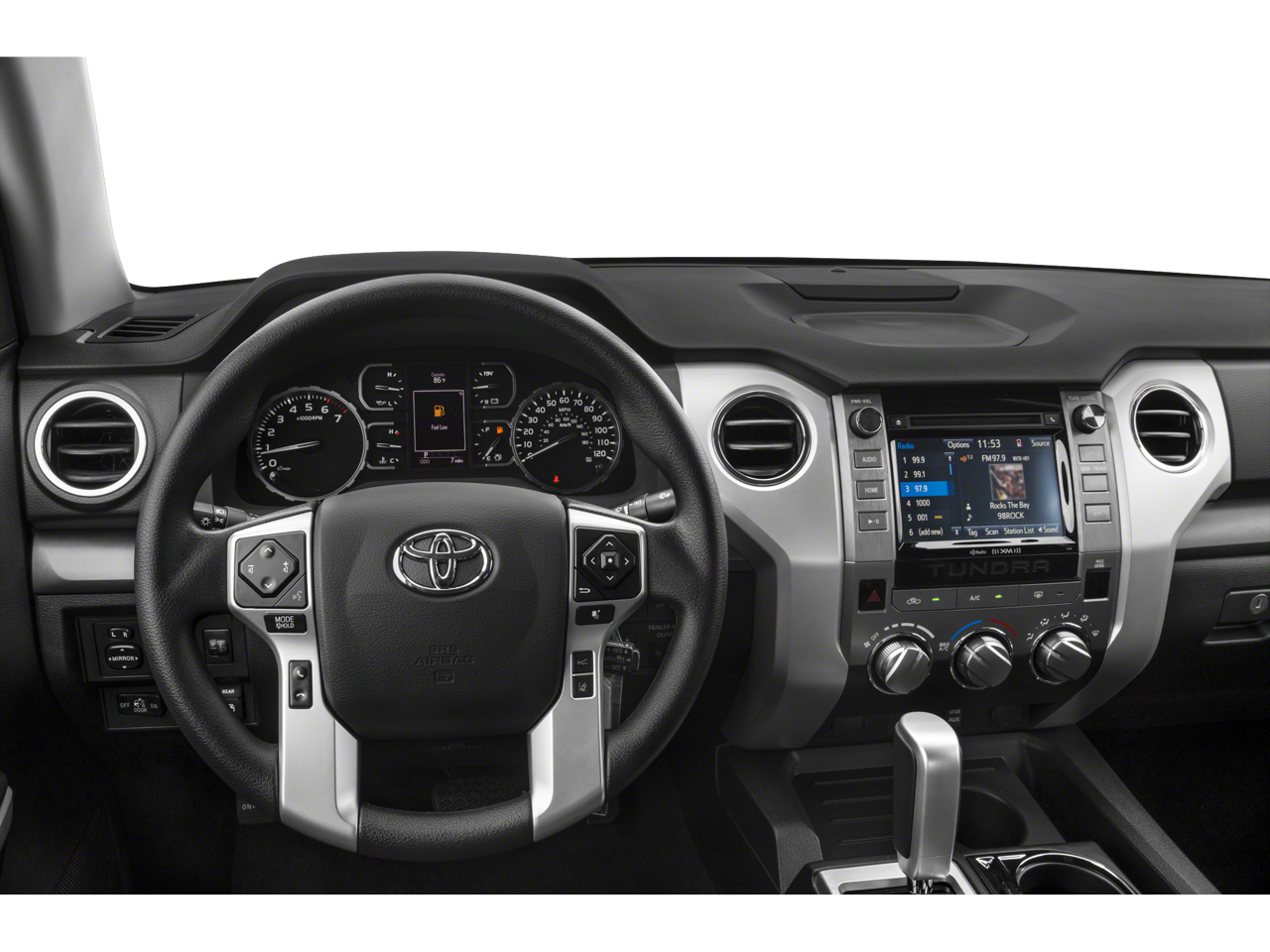 SR5 UPGRADE PACKAGE front center console w/3 cupholders and replaces standard equipment column shifter w/floor mounted urethane shift lever and knob, Urethane Tilt/Telescopic Steering Wheel, Anti-Theft Immobilizer w/Alarm, 38 Gallon Fuel Tank Capacity, Front Bucket Seats, 8-way power-adjustable drivers seat w/power lumbar support and 4-way manual adjustable front passenger seat, RADIO: ENTUNE PREMIUM AUDIO AM/FM W/HD RADIO & CD integrated navigation system, MP3/WMA playback capability, AM/FM cache radio, 9 speakers, 7 high-resolution touch-screen w/split-screen display, auxiliary audio jack, USB media port, HD Radio predictive traffic and Doppler weather overlay, Bluetooth® hands-free phone capability w/advanced voice recognition, phone book access and music streaming and Siri Eyes Free, Entune App Suite, Destination Search, iHeartRadio, Yelp and Slacker Radio, Auto-Dimming Rearview Mirror, SIRIUSXM Satellite Radio, complimentary SiriusXM All Access, HomeLink Universal Transceiver.