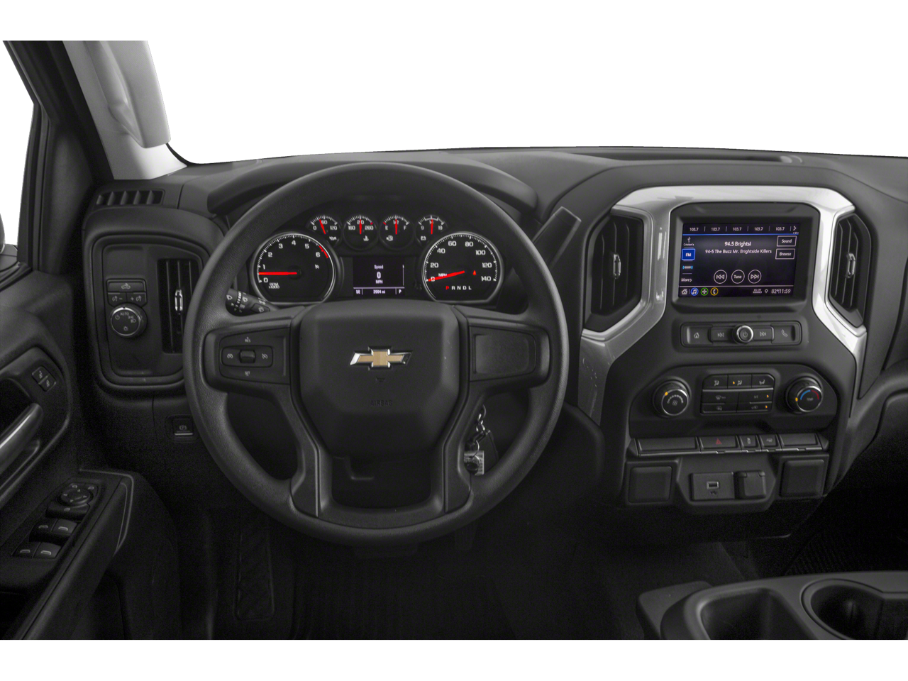CUSTOM MAX TRAILERING PACKAGE includes (DPO) trailering mirrors, (BVT) assist steps, (CGN) Chevytec spray-on bedliner, (GT4) 3.73 axle ratio, (R7O) Cloth Rear Seat with Storage Package, (RIA) All-weather floor liners, LPO, (SIE) Tiered storage, LPO, (S41) Wheelhouse liners, LPO, (VBR) Rubber bed mat, LPO, (VOZ) Tonneau cover, LPO and (5VI) Tie-down, LPO, ENGINE, 5.3L ECOTEC3 V8 with available Active Fuel Management, (355 hp [265 kW] @ 5600 rpm, 383 lb-ft of torque [518 Nm] @ 4100 rpm) NOTE: Some models built beginning in March will include (YK9) Not Equipped with Active Fuel Management. AUTO-LOCKING REAR DIFFERENTIAL, SAFETY CONFIDENCE PACKAGE includes (UEU) Forward Collision Alert, (UHY) Automatic Emergency Braking, (UKJ) Front Pedestrian Braking, (UK3) Steering Wheel Audio Controls and (UDD) Driver Information Center, SEAT, CLOTH REAR WITH STORAGE PACKAGE 60/40 folding bench for Crew Cab models, includes seatback storage on left and right side, center fold out armrest with 2 cupholders, (includes child seat top tether anchor), AUDIO SYSTEM, CHEVROLET INFOTAINMENT 3 SYSTEM 7 diagonal color touchscreen, AM/FM stereo. Additional features for compatible phones include: Bluetooth® audio streaming for 2 active devices, voice command pass-through to phone, wired Apple CarPlay® and Android Auto® capable. (STD), TRANSMISSION, 6-SPEED AUTOMATIC, ELECTRONICALLY CONTROLLED with overdrive and tow/haul mode. Includes Cruise Grade Braking and Powertrain Grade Braking.